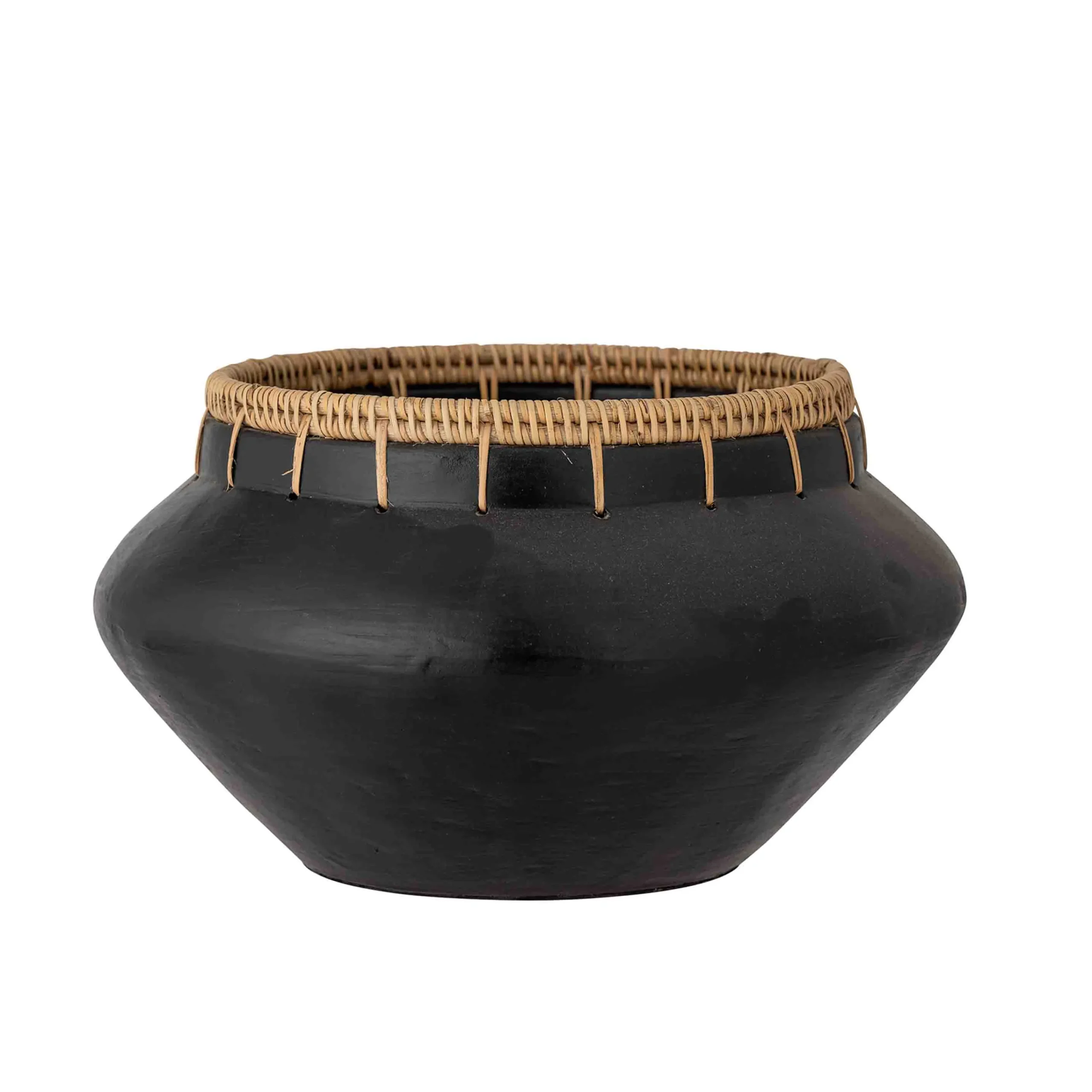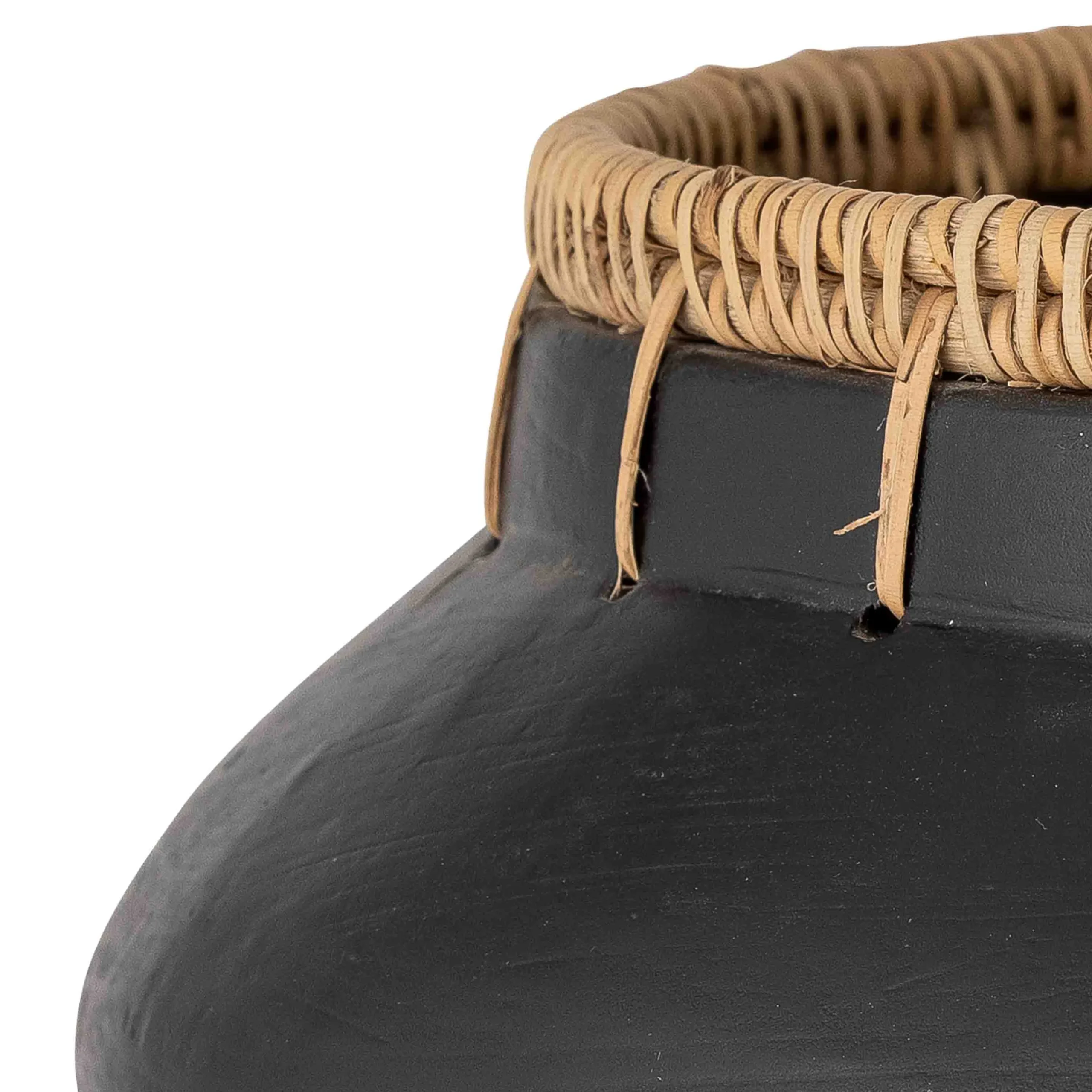 Die Dixon Dekovase von Bloomingville besteht aus Terrakotta mit einem schönen Rattan-Detail. Die Oberfläche ist besonders mit einer matten, aber weichen Optik – der perfekte Kontrast zur Naturjute-Farbe. Verwenden Sie es für die Deko und kombinieren Sie es mit anderen Dekoartikeln für ein gemütliches und persönliches Styling.