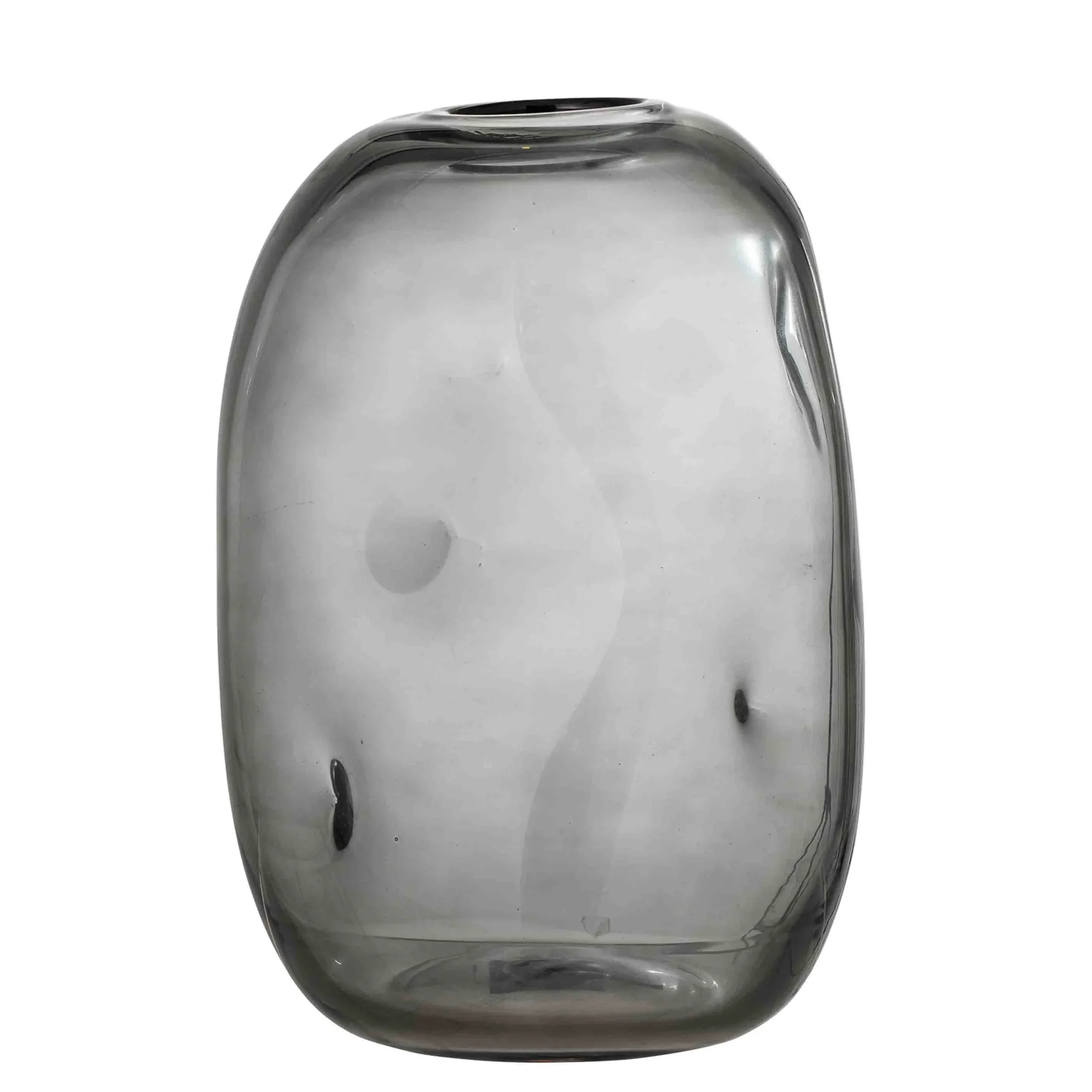 Die Vinda Vase von Bloomingville ist eine feine und elegante Vase aus grauem Glas. Die Vase hat eine organische Form mit verschiedenen geformten Elementen auf ihrer Oberfläche. Einfach perfekt in allen Räumen mit einem Blumenstrauß oder einer Trockenblume Ihrer Wahl.