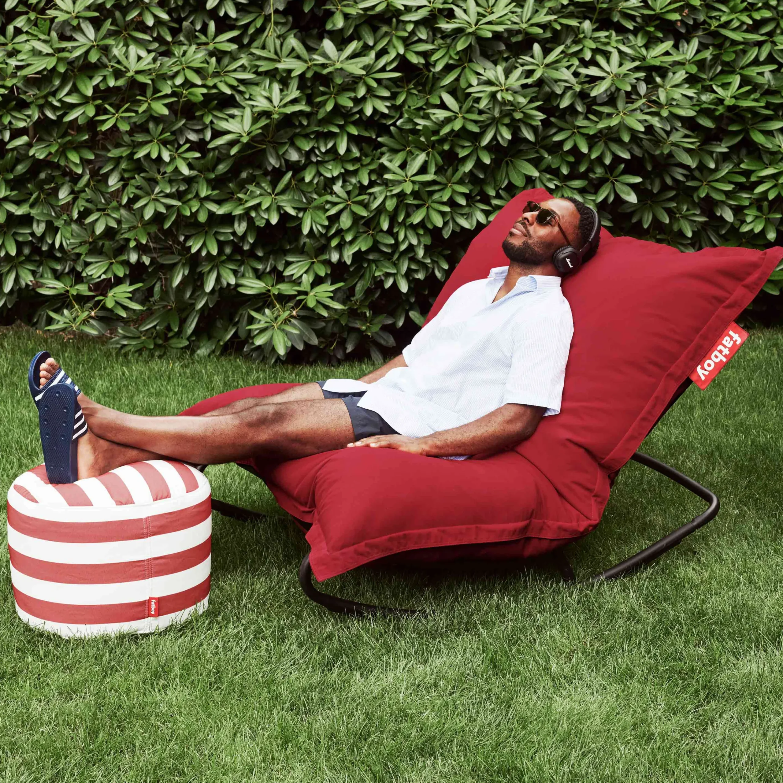 Der Fatboy Rock ’n Roll verwandelt das Original in einen modernen Schaukelstuhl. Er verfügt über ein modulares Gestell und 8 stabile Gurte, auf die Sie Ihren Original-Sitzsack einfach aufsetzen können. Da ist er, ein riesiger schwarzer Schaukelstuhl! Ein Schaukelstuhl, der sowohl für drinnen als auch draußen geeignet ist und aus wasserabweisendem Material hergestellt ist. Dieses Metall ist verzinkt und pulverbeschichtet, um die Haltbarkeit zu erhöhen. Der Rock ’n Roll hat auch eine Anti-Rutsch-Beschichtung und kann dank der mitgelieferten Rock-Blocker gesichert werden. Dieser moderne Schaukelstuhl lässt sich auch leicht (de-)montieren und kann mit allen Originalen verwendet werden. Kombinieren Sie ihn zum Beispiel mit einem Original Outdoor, und Sie erhalten einen Schaukelstuhl, der ein echter Blickfang für jeden Garten ist!