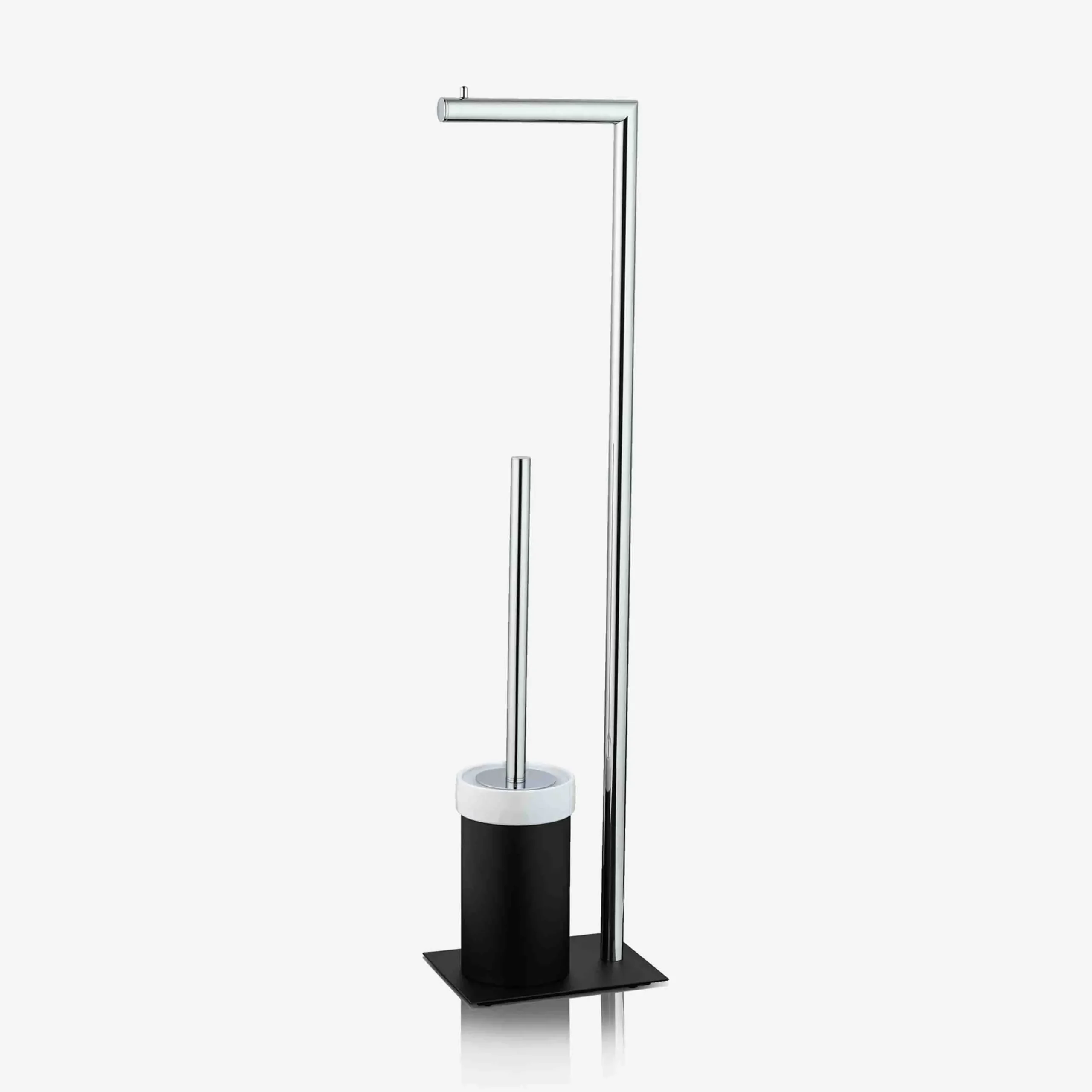 Mit dem edlen Chrom-Design des freistehenden WC-Bürsten-Sets beweist das Bad-Accessoire aus der JOOP! CHROMELINE BLACK Serie in matt Schwarz stilvolle Klasse bis ins Detail. Ein moderner Papierhalter ergänzt die leichte Bürstenkombination, welche durch das freistehende Element für mehr Platz und Atmosphäre im Bad sorgt.