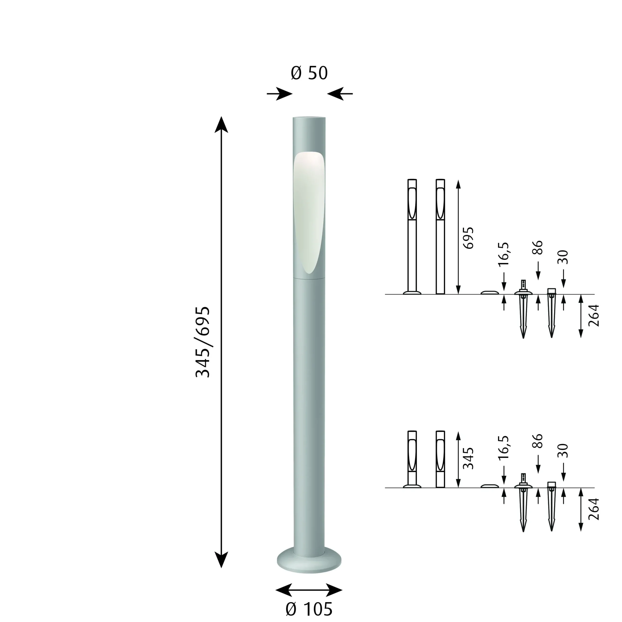 Produktinformationen „Louis Poulsen Pollerleuchte Flindt Garden Short Aluminiumfarben Struktur“