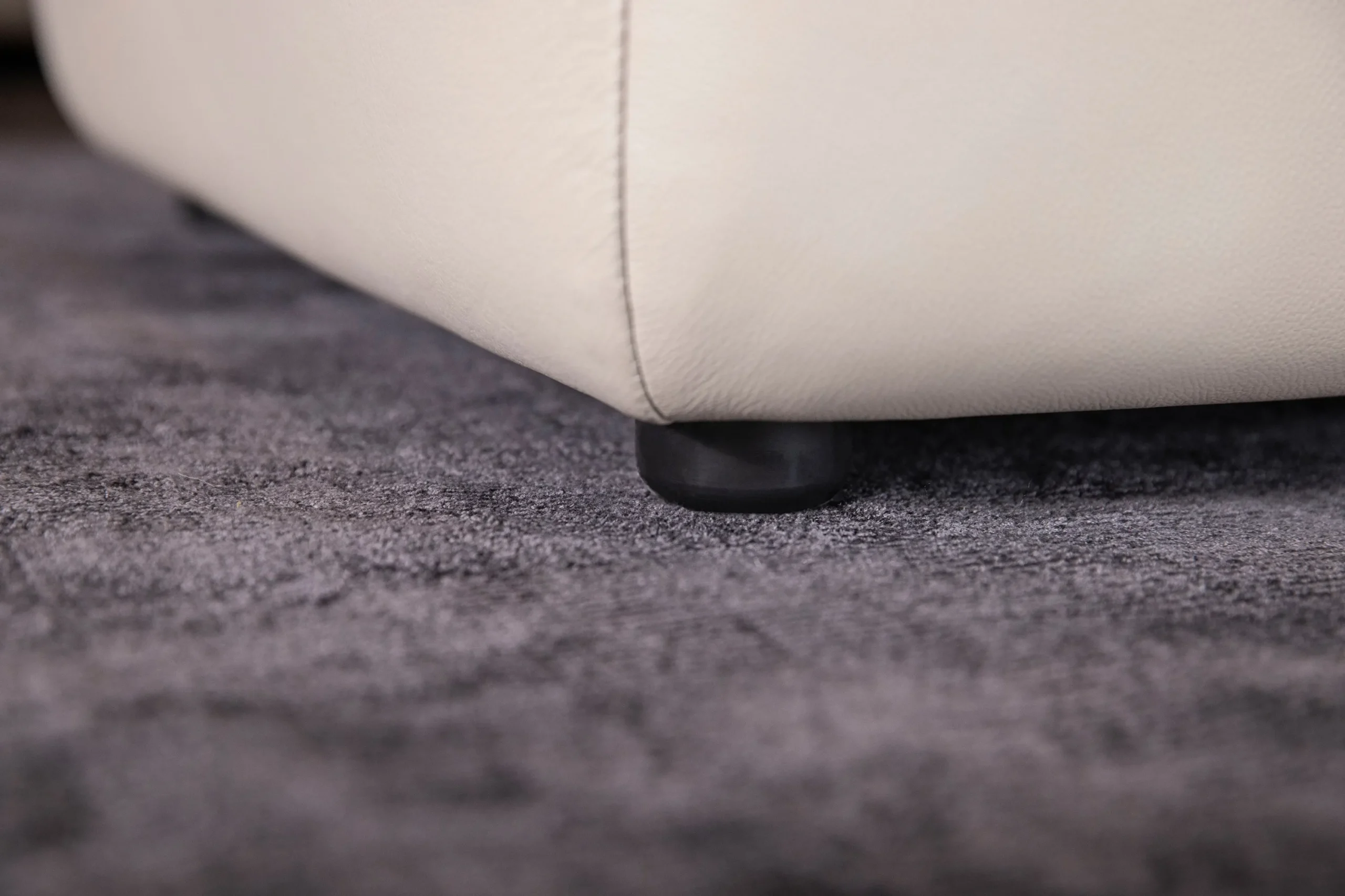 Das Sofa ist mit Leder Z59/20 in Eisgrau bezogen, was ein pflegefreundliches und für Familien geeignetes Material darstellt. Die Polsterung besteht aus ergo-PUR-Schaum und dauerelastischen Wellenfedern, die einen erstklassigen Sitzkomfort bieten. Kunststoffgleiter F00 in P99 schwarz sorgen für einen sicheren Stand ohne den Boden zu beschädigen.
